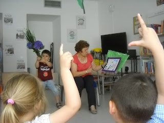 A avó do Pedro leu e explorou a história: Se os bichos se vestissem como gente de Luísa Ducla Soares. As crianças ouviram atentamente e no final ofereceram flores e um lindo desenho à D. Maria Augusta que ficou muito contente. Todos agradecemos a sua colaboração.