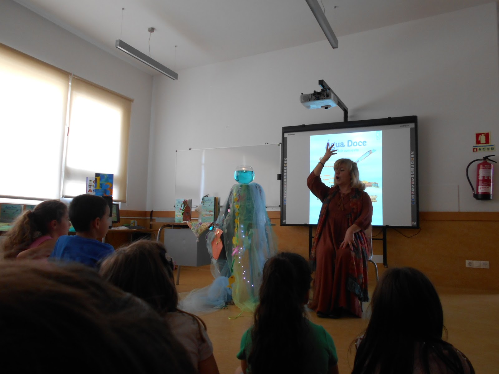 Todos os alunos ficaram muito atentos e deliciados a ouvir a contadora de histórias Joaninha Duarte e a visualizar as páginas do livro que Danuta explorava, explicando como eles poderiam contribuir para ajudar a terminar a obra.